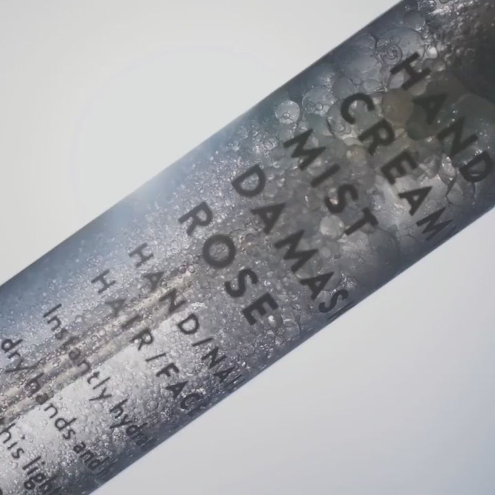 ウォーターの層は、オーガニックダマスクローズウォーターに、乳化作用のあるとうもろこしタンパクを少しだけミックスしています。手にミストすると、このタンパクが手に含まれる皮脂も一緒に乳化させ、一緒に浸透していくのです*。手のひらのベタつきは不思議となくなり、もっちり感とサラサラ感という相反する質感が残ります。