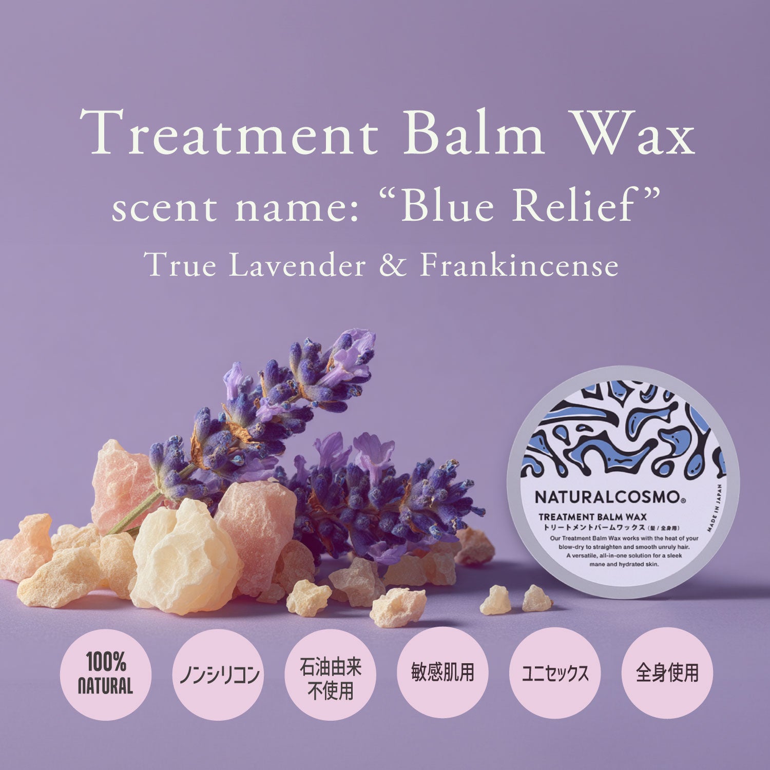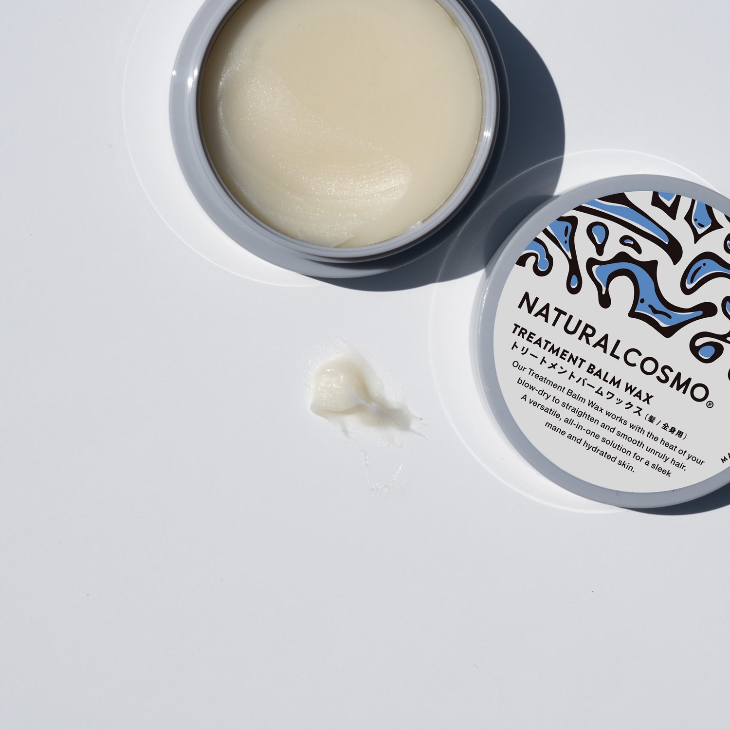 ブリーチやカラーをすることは、人生をより楽しく生きるために大切なこと。そして、トリートメントバームワックスは、その楽しみをさらにアップさせるアイテム。使った瞬間から、オイルでは出せない、けれどバームとは思えないほどのサラツヤヘア。また、髪内部に浸透するグルタミン酸(あの旨み成分です)とリシンの化合物を配合し、髪の内部からトリートメントしていきます。アルコールベースのスタイリング剤でパサパサになった髪にも有効です。