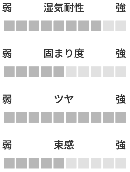 適度な束感を作りながら、多めの髪もボリュームを損なうことなく、綺麗なふんわりスタイルを作ります。オイルやバームを髪に塗ってから使用すると、固めずウェットに仕上げられます。使用量により、束感や強さを調整できます。