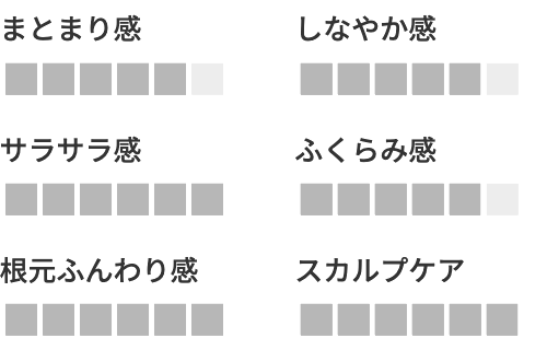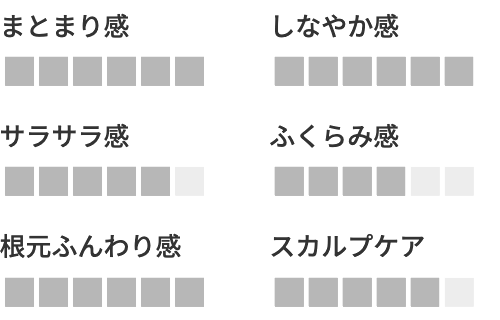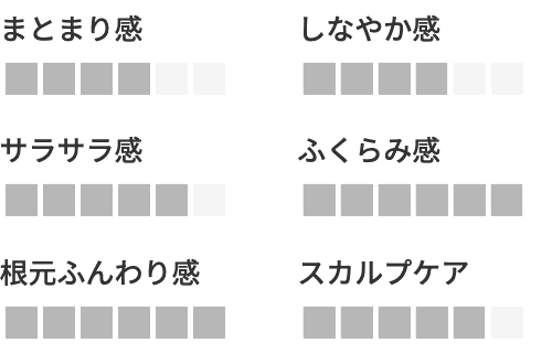 - オススメの髪質 : ダメージ毛、猫毛で絡まりやすい、敏感肌、根元ぺたんこ、ボリュームがでないロングヘア